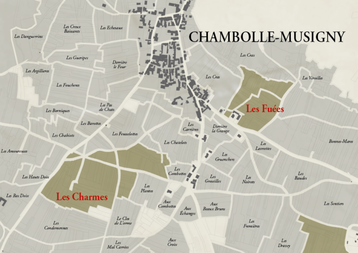 This unique blend is elaborated exclusively from two 1er Cru plots in Chambolle-Musigny, "Les Charmes" and "Les Fuées". Chambolle-Musigny 1er cru "Les Fuées", over 80 years old, is located opposite the "Bonnes Mares" Grand Cru appellation, in a sandier sector than the "Charmes" parcel. It combines a dense texture with a racy suppleness that brings a fine balance to this cuvée. Fifty-year-old Chambolle-Musigny 1er cru "Les Charmes" is by very stony soil, draped in age-old silts. The limestone scree adds a singular touch, a subtle minerality that enriches its complexity. The delicately laid silts add their sparkle to the mosaic of aromas emanating from the wines produced by this cuvée.